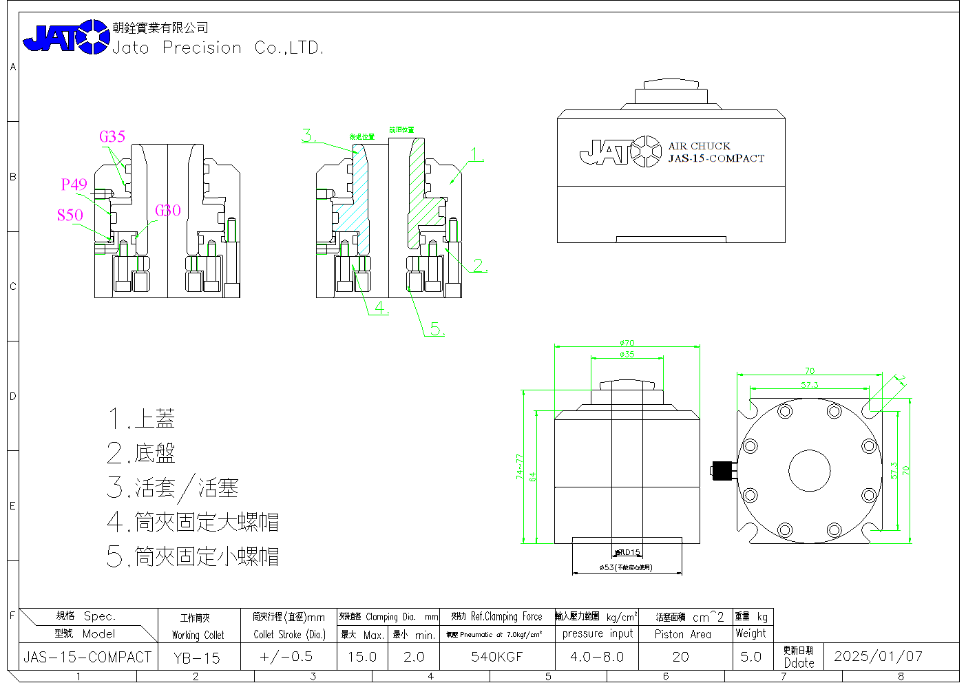 作为机械手末端夹具使用,具备高定心精度 夹持能力可超过 50 kgf,适合重载抓取 可倒立安装,仍维持稳定夹持与精度 超小型、低成本、固定式筒夹夹头 Dead‑length 无轴向移动,定位一致 小体积仍具高精度、高刚性 强化防屑、防水、防尘结构 轻量化、低负载、安装弹性高 重复精度远高于一般机械手夹爪 结构简单、寿命长、维护成本低 可倒立、侧挂、任意角度安装,适合狭小空间